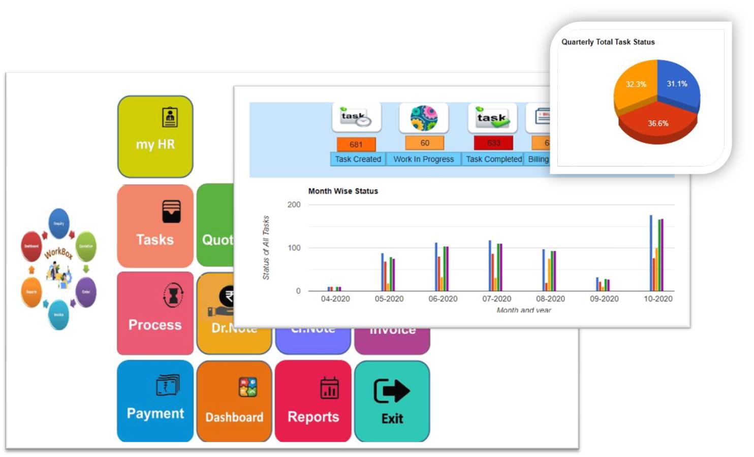 Workbox tool is designed for managing day to day activity of Office and Work from home . It's web version is easily accessible. Easy to use report which can be helpful to track the productivity of employees and manage day to day work and its progress.